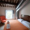 Le stanze hanno letti restaurati di varie epoche appartenenti alla Villa come gran parte dei mobili. Accedendo dall’ingresso del piano terra ci si trova davanti ad un scala in cemento elicoidale che collega i due piani con parapetti e ballatoio in cristallo, la copertura a doppia falda con pianelle in cotto fatte a mano e travi di castagno è a vista. Un tempo fu dimora estiva. Qui, dal centro di Osimo, la nobile famiglia proprietaria si trasferiva per godere del fresco della campagna e trascorrere ore piacevoli in compagnia di parenti ed amici.