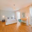 Bellissime e raffinate le stanze della zona notte con letti con testate in pelle, moderni scrittoi, lampade di design e affacci sulla piscina e su altri angoli molto suggestivi della casa e della campagna circostante.