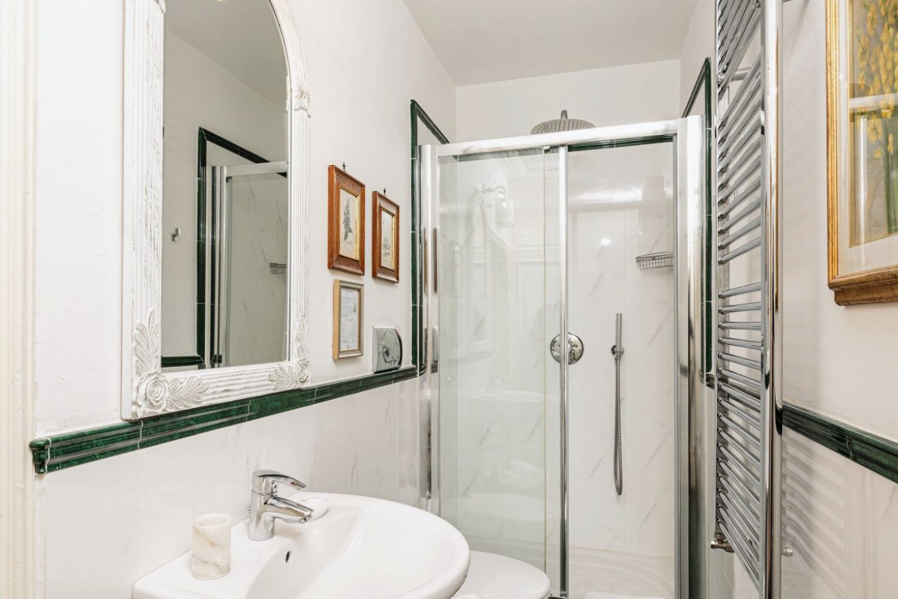 Cinque camere dispongono di bagno en-suite, mentre due camere condividono un bagno completo. Al piano terra è inoltre presente un bagno di servizio (WC).