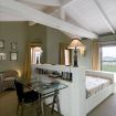 Sul lato sinistro si trova la seconda unità che è composta da una zona notte con 3 camere da letto, due doppie e una matrimoniale, ciascuna con bagno en-suite e accesso diretto al giardino. Al piano inferiore ci sono 2 camere matrimoniali e 1 camera doppia, ciascuna con bagno en-suite. C’è una doccia esterna.