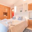 La seconda struttura dispone di un soggiorno con vista mare e piscina, camino, area salotto con TV, cucina attrezzata, una camera da letto padronale con bagno privato e doccia, due camere matrimoniali anch’esse con un bagno.