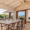La villa, rivestita in pietra, è distribuita su due piani. Il piano nobile è diviso in due blocchi, separati da un patio parzialmente coperto. Il primo blocco è composto dalla cucina completamente attrezzata e dal luminoso e confortevole soggiorno, con ampie vetrate scorrevoli, che si affaccia sul patio e sulla piscina con vista mare. La seconda è composta dalla camera matrimoniale con bagno en suite e terrazzo vista mare e da una camera matrimoniale con bagno en suite e vista laterale sul giardino. Il patio, che dispone di un elegante tavolo da pranzo con otto posti ed è arredato con poltrone e tavolini, è il luogo ideale per trascorrere momenti di vero relax.
