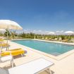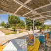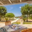 La tinteggiatura chiara degli esterni crea un piacevole contrasto con il verde della macchia mediterranea che circonda tutta la villa, un grande parco alberato di 20000 m2.