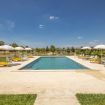 Esternamente un lastrico solare, ombreggiato da una grande pergola, conduce con lo sguardo verso la piscina, completamente circondata dalla vegetazione.