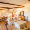 La zona living è arredata di tutto punto, con toni armoniosi e vivaci che richiamano la tipica natura del luogo. Le ampie vetrate rendono l’ambiente luminoso e accogliente, permettendo di rilassarsi accoccolati sul divano e di godere ugualmente della splendida atmosfera del posto.