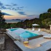 Esternamente si compone di una veranda arredata fronte mare, una magnifica piscina 11,5×4,5 separata dal corpo della villa e attrezzata con ombrelloni e lettini, e un gazebo in legno pregiato con tavolo da 10 posti, dove trascorrere piacevoli pranzi e cene all'aperto e all'ombra tra i profumi e la vista del mare. C'è anche un barbecue e una zona panoramica sul tetto della villa.