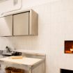 Al primo piano, accessibile o dalla scala esterna o da un ascensore interno, troviamo una suite con due camere da letto matrimoniali con servizi in camera, e un soggiorno con angolo cottura.