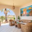 Un quadro appeso sotto al portico di Villa Queen ne racconta la radici: un terreno coltivato a uva, fichi d’india e limoni, il mare a perdita d’occhio e, in primo piano, la torre di Porto Palo, la torre costiera che presidia il territorio di Menfi.