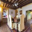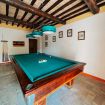 Gli ambienti sono spaziosi e distribuiti su due livelli. Al piano terra si sviluppa la zona giorno, formata da due cucine, grande sala da pranzo con camino, lavanderia, sala biliardo, angolo lettura e salotto. Proprio da questa stanza parte la scala che porta alla zona notte, nel piano superiore.