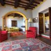 Tutto, qui, è autentico: il bellissimo pavimento in cotto, levigato dal tempo; il chiostro con il ballatoio di legno e gli alti archi; la grotta in pietra collegata alla cucina, dove conservare le norcinerie.