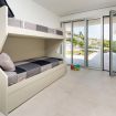 Al piano superiore si trovano la master bedroom con bagno privato, una camera matrimoniale, una cameretta e un bagno. Al piano terra della villa, indipendente rispetto al resto della casa e accessibile solo dall’esterno, si trovano una zona living con sala da pranzo e cucina, una camera matrimoniale e un bagno. Mentre le due dependance ospitano rispettivamente la quinta e la sesta camera da letto con patio, frigobar e bagno privato.