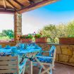 Dalla sala si accede ad una veranda dove si trovano una tavola che dà la possibilità di pranzare proprio in riva al mare e angolo relax con divani.